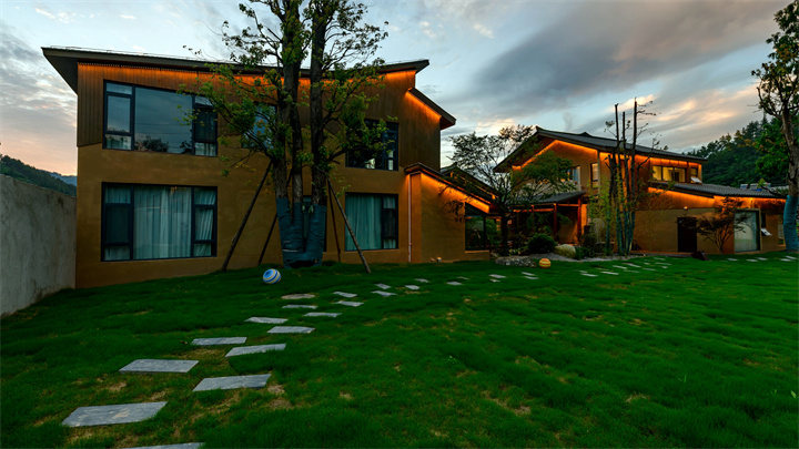 历经了三年匠心打造,融合了多位大师的手笔, 打造出的田园别院。远山含黛,百鸟鸣唱,建筑掩映在浓荫之中。